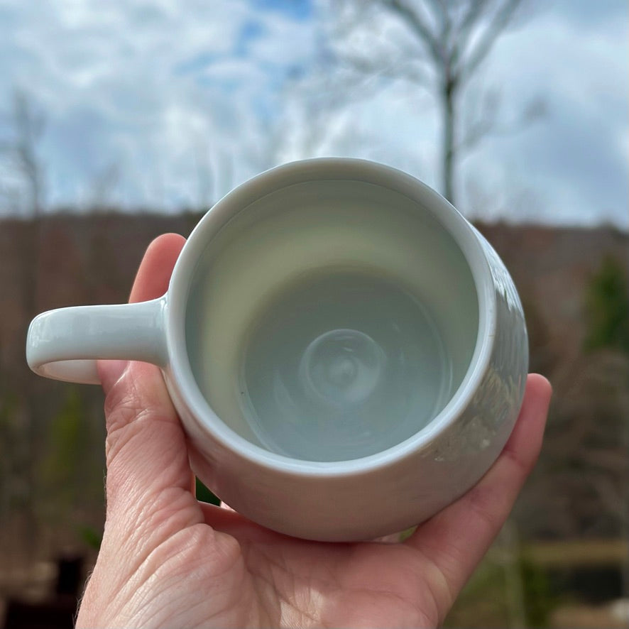 Hand-thrown from translucent porcelain with light blue glaze.