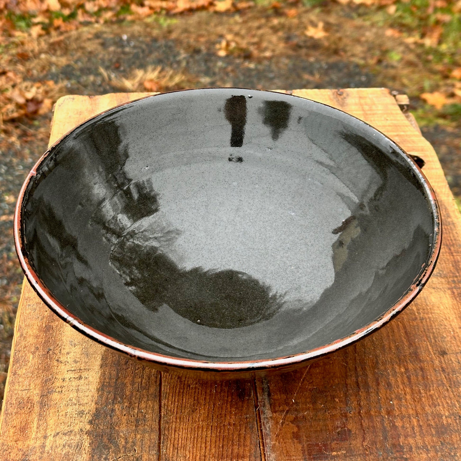 Fern Black Slip Medium Serving Bowl